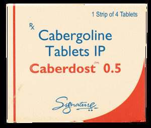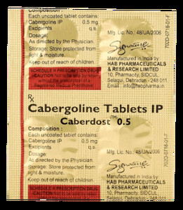 通常、成人にはカベルゴリンとして1日量0.25mgから始め、2週目には1日量を0.5mgとし、以後経過を観察しながら、1週間毎に1日量として0.5mgずつ増量し、維持量を定めるが、最高用量は1日3mgとする。